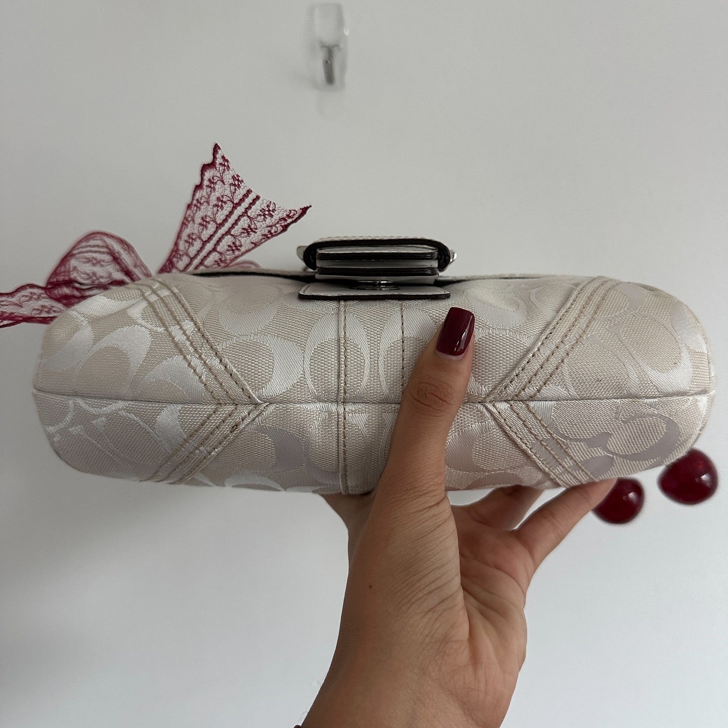 Y2K Coach white monogram Soho bag, in amazing condition. Featuring the iconic monogram pattern, this bag offers a sleek and stylish look perfect for any occasion.